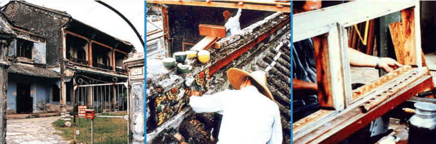 Leading the restoration team, architect Laurence Loh sought to tread lightly and touch softly, spending six years in a detailed process to preserve as much as possible of the original structure. What needed restoration or replacement was done with the view to retain traditional methods, such as the Chien Nien cut and paste artworks decorating the gables.